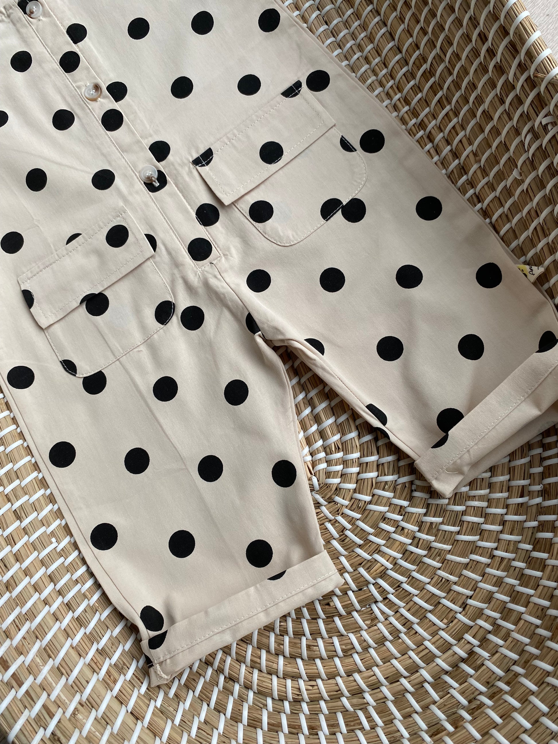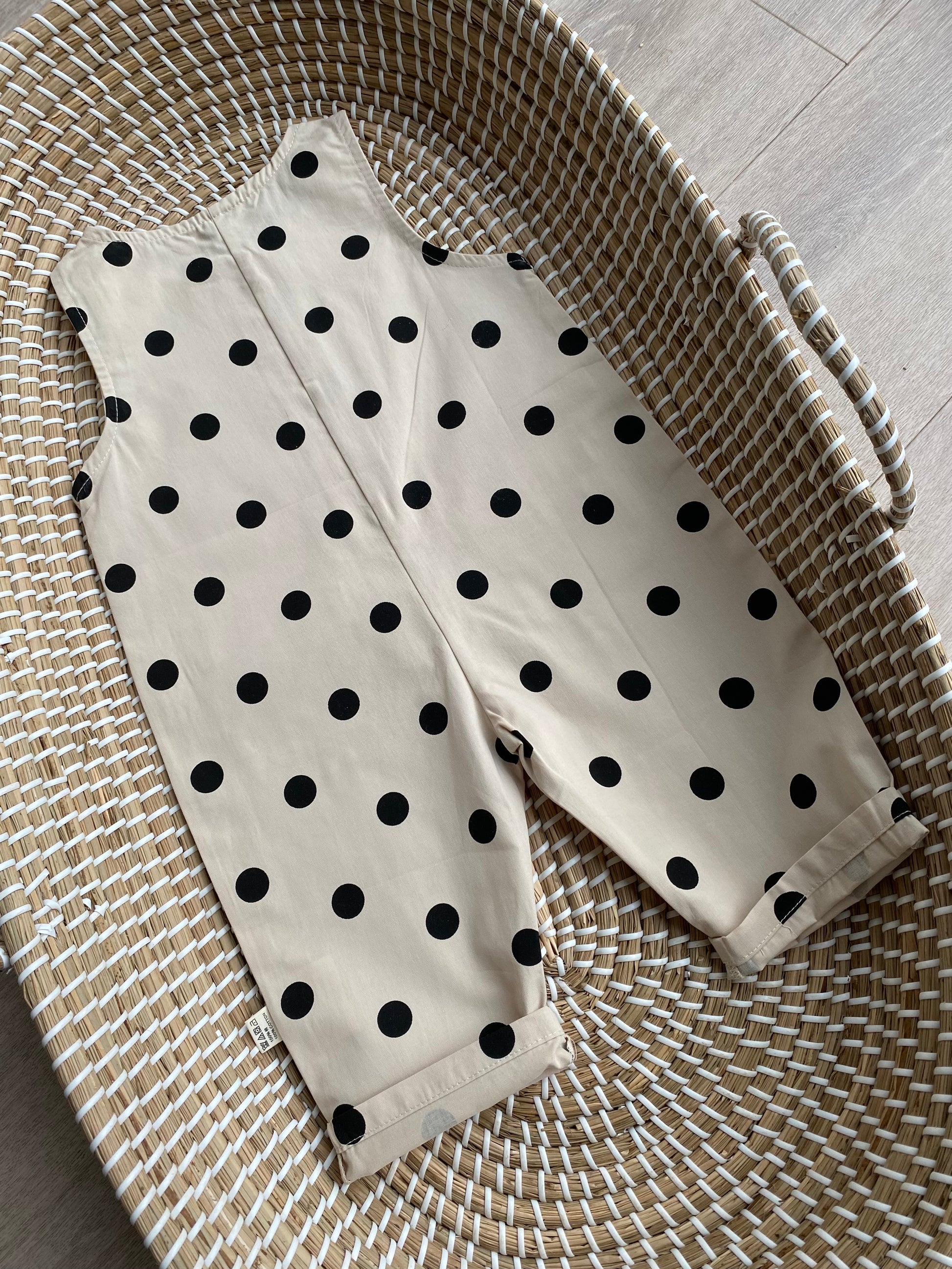 Playful, timeless, and made for little explorers, this children’s polka dot romper features a soft neutral base with bold black spots for that effortless, vintage inspired look. Perfect for everyday wear, holidays, and special moments alike.