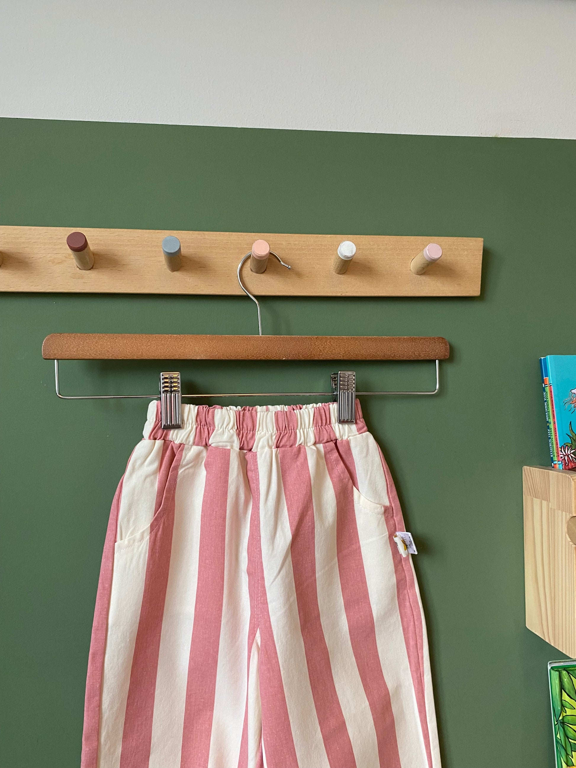 Made for mini explorers, these pink and white striped cotton pants are a laid-back staple for every little drifter’s wardrobe. Crafted in 100% soft cotton with a relaxed fit, they’re perfect for beach walks, playdates, and everything in between.