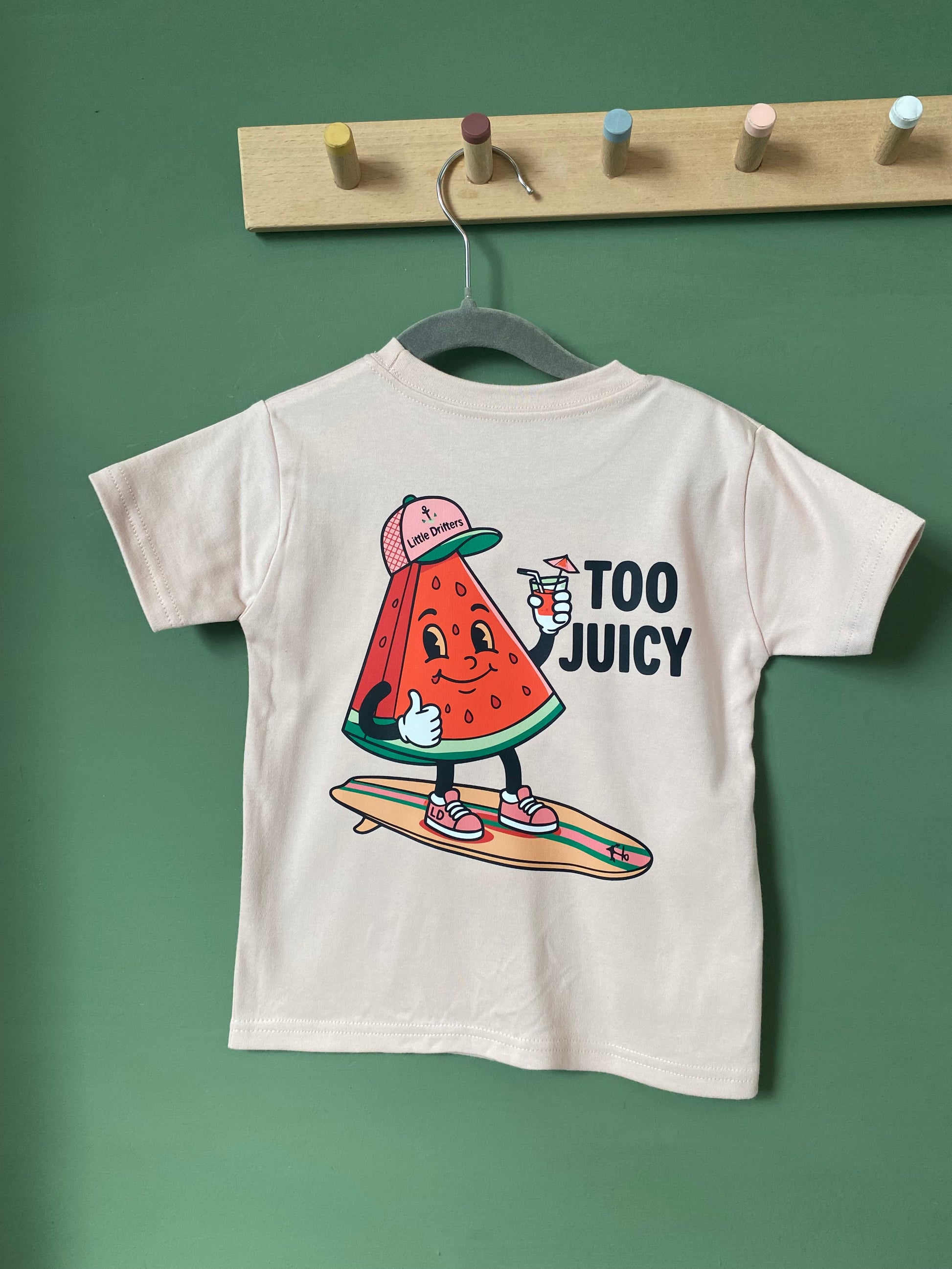 Fun, coastal, and full of character, this Little Drifters “Too Juicy” tee is made for little adventurers.